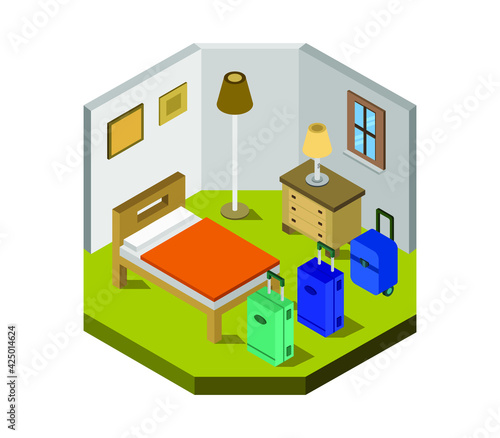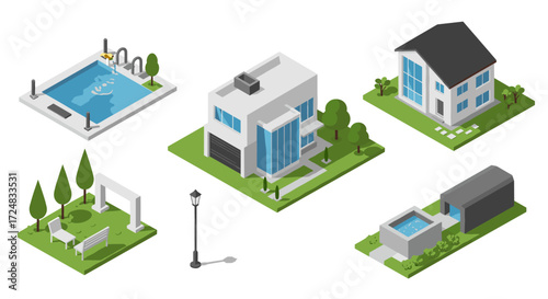 Pojištění domácnosti zastavení dominového efektu, ploché vektorové izometrické ilustrace. Domácí ochrana před krádeží, poškozením, přírodní katastrofou. Nemovitosti, pojištění majetku.