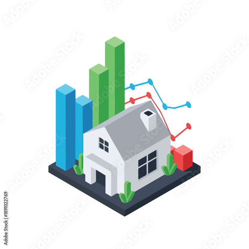 Pojištění domácnosti zastavení dominového efektu, ploché vektorové izometrické ilustrace. Domácí ochrana před krádeží, poškozením, přírodní katastrofou. Nemovitosti, pojištění majetku.