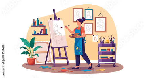 Home volnočasové aktivity landing Page design, webové stránky banner šablona set, plochý vektor ilustrace. Žena zdobení zdi s obrázky v obývacím pokoji, sledování filmu on-line doma.
