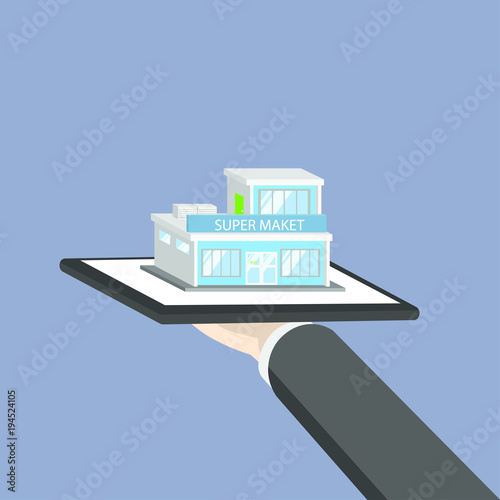 Home loan concept vector izometrické ilustrace. Smlouva o hypotečním dokumentu s domem a mužem, který si půjčil peníze na jeho koupi.