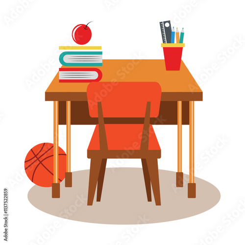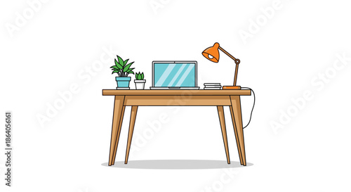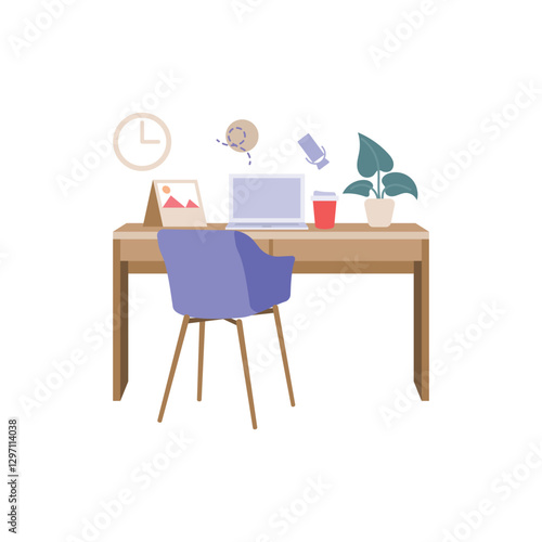 Interiér domácí kanceláře s konferenčním stolkem, přenosným počítačem a křeslem vektorové ikony izolovaných na bílém pozadí. Koncept virové pandemie.