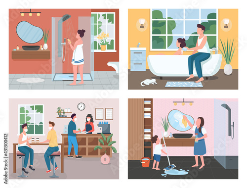Home office vstupní stránky design, webové stránky banner šablony set, ploché vektorové ilustrace. Šťastný muž a žena pracující na dálku z domova. Na volné noze, distanční vzdělávání.