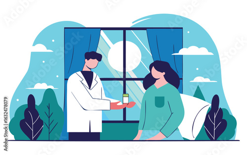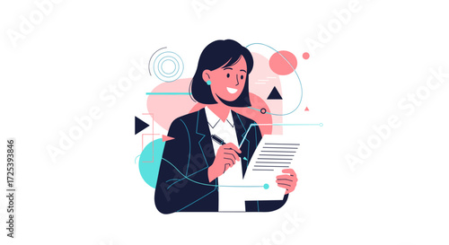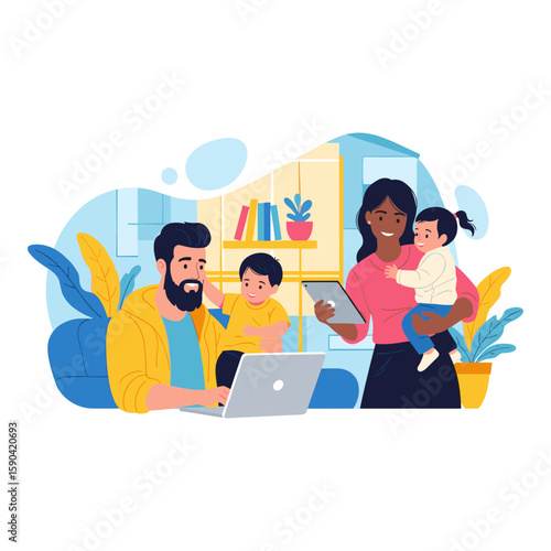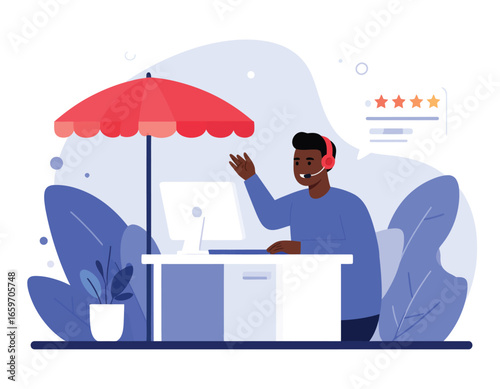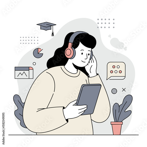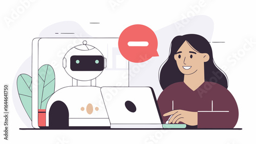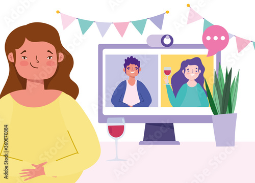 Domácí kancelář vektor. Mladá žena kreslená postavička pracuje na přenosném počítači. Žena na volné noze nebo student s on-line chatu ploché ilustrace