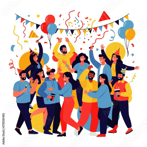 Domácí párty. Šťastní lidé přátelé tančí, odpočívají a baví se, vektorové ploché ilustrace. Narozeninová oslava, domácí diskotéka.