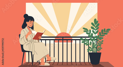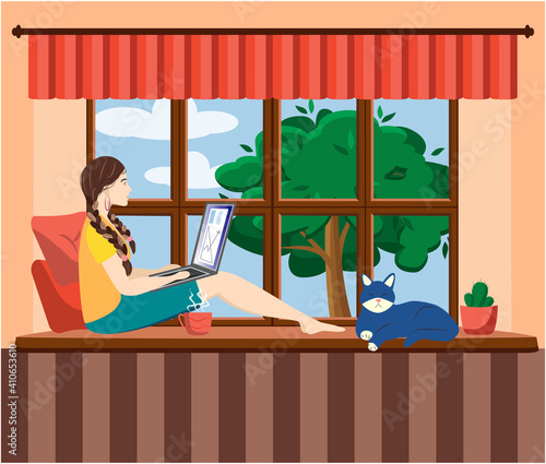 Domácí karanténa virus epidemie vektor plakát. Mladá dívka v izolaci. Prevence a povědomí o respiračních onemocněních koronaviru. Žena onemocněla virem corona a zůstala doma