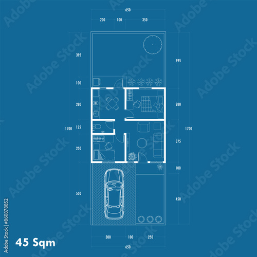 Plán renovace domu v vektorové ikoně telefonu. Mobilní aplikace pro vývoj stavebních projektů