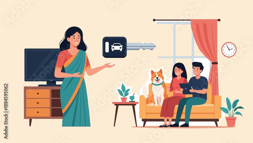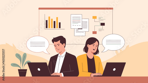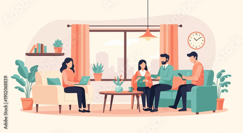 Opravy a vylepšení domů, ploché vektorové ilustrace. Malíř malba zeď. Domácí návrhář interiérů pomáhá zákazníkovi vybrat barvy nástěnných barev online.