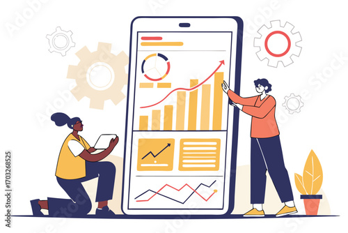 Mužské a ženské postavy malování stěn a instalace laminátu, vektorové ilustrace. Home remodeling, renovace a opravy služeb koncept pro web banner, webové stránky atd.