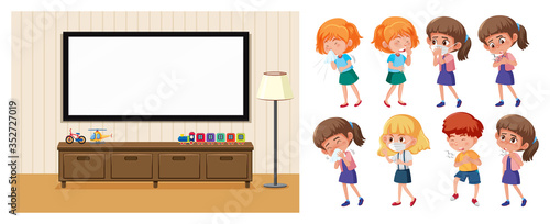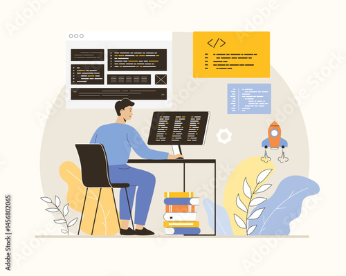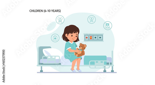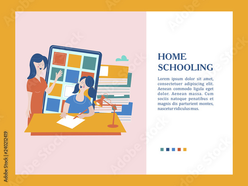 Vektorové ilustrace šťastné roztomilé dívky dělat domácí úkoly. Plochý designový prvek, ikona izolovaná na bílém pozadí.