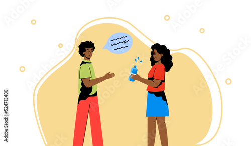 Koncept homofobie. Sociální tlak a tyran vektor. Smutná ženská postava s duhovou vlajkou a designem ukazováčků.