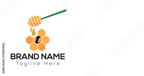 Med lžíce vektorové hůl ilustrace izolované. Kapající zlatý sladký medový sirup z medu na bílém pozadí