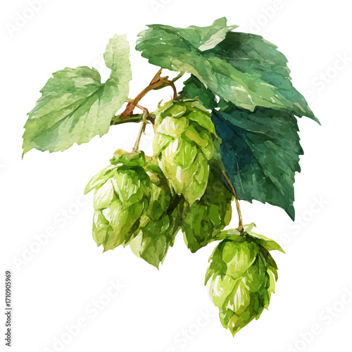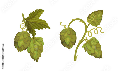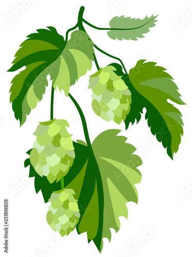 Hop větev vektor. Ikona pivní rostliny. Designový prvek pro logo, štítek, znak, znak izolovaných na bílém pozadí