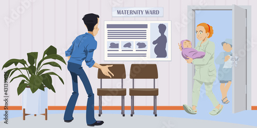 Nemocniční koncept. Traumatologist poskytuje lékařskou prohlídku pro pacienta. Doktor kabinet interiér. Vektorové ilustrace v plochém stylu. Designové prvky a ikony.