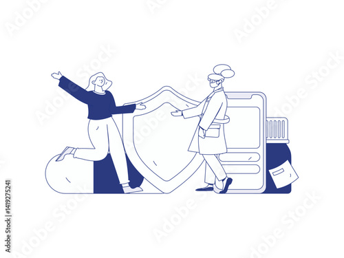 Virus léčba koncept vektorové ploché ilustrace. Lékaři v plných oblecích hazmat poskytující lékařskou pomoc v nemocničním JIP pokoji pacientovi trpícímu těžkou akutní respirační koronovou virovou chorobou COVID-19.