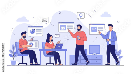 Hostel společná kuchyň ad jídelní kout s postavami, vektorové ilustrace. Hostel obchodní koncept pro web banner, webové stránky atd.