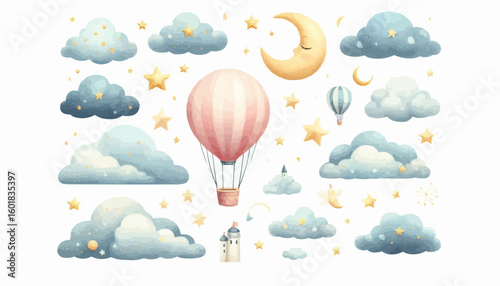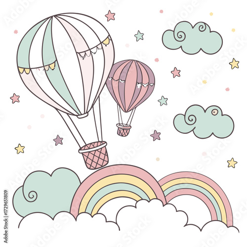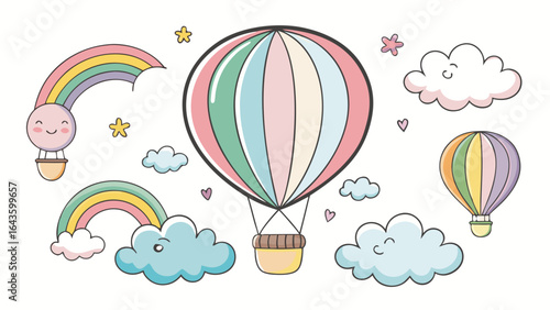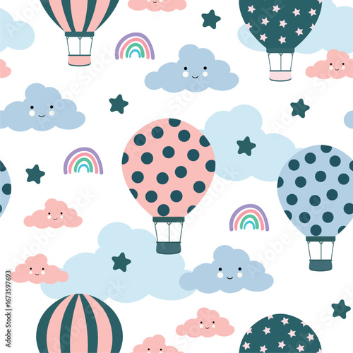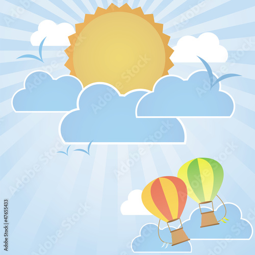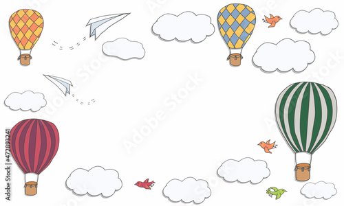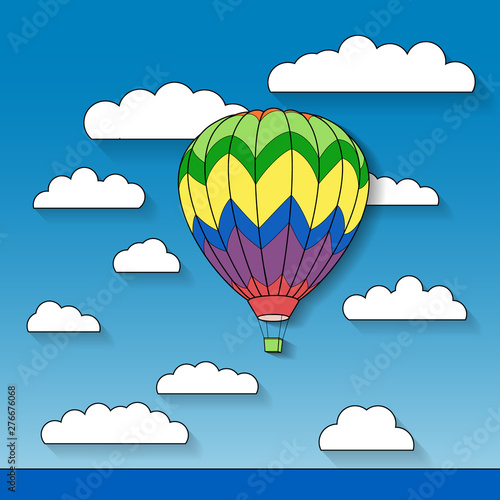 Horkovzdušné balóny na obloze. Vektorové ilustrace ve stylu papírového umění. Horkovzdušný balón pozadí, tapety.
