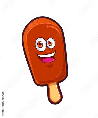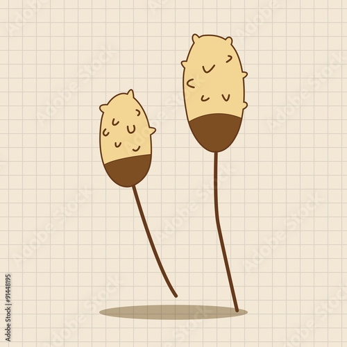 Hot Kukuřice pes vektorové kreslená postavička. Smažená klobása v těstě na tyči s hořčicí izolovaných na bílém pozadí. Kukuřice pes fast food snack maskot ilustrace
