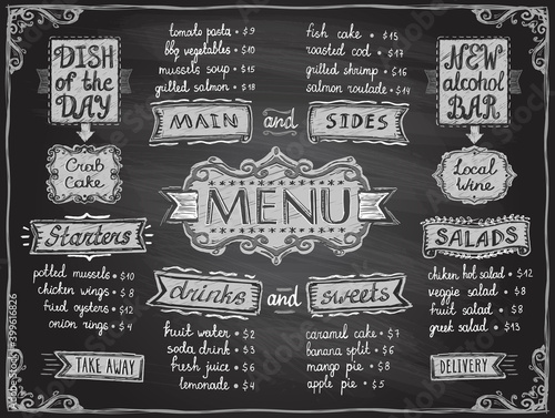 Teplé nápoje a sladké dezerty menu vektorové šablony. Přední a zadní nabídka formátu papíru A4, ručně kreslený design pro čajovnu, kavárnu, kavárnu a restauraci.