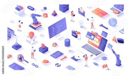 Izometrický vývojový diagram rezervace hotelu. Ruka, mobilní telefon, taxi, bufet, recepce, pokojská, vrátný a pokojová služba, ploché vektorové ilustrace. Rezervace hotelu online služba.