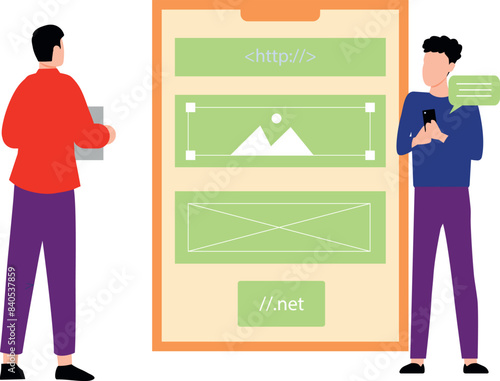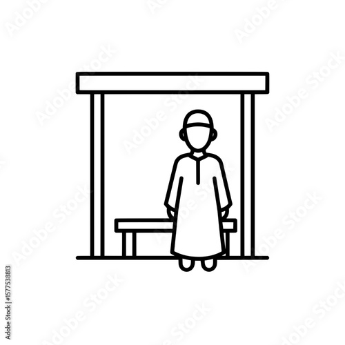 Vektorová ilustrace muže zákazníka stojícího před dveřmi hotelu. Hotel guest concept plochý styl designový prvek.