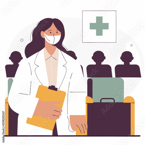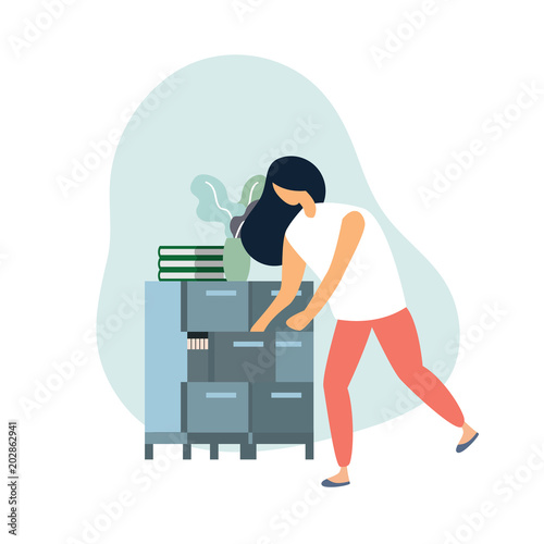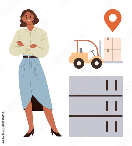 Hotel housemaid stojící vedle vozíku s čistým ložním prádlem a ručníky. Hotel lidé plochý styl designový prvek, ikona izolován na bílém pozadí.
