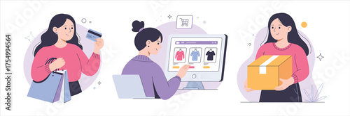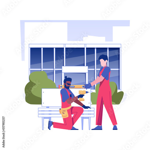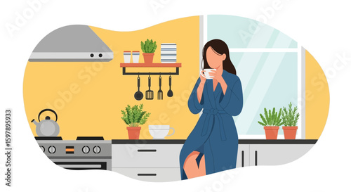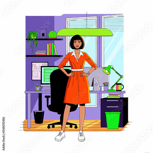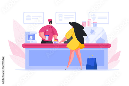 Hotel housemaid ploché vektorové ilustrace. Uklízečka nebo hospodyně stojící vedle vozíku s čistým ložním prádlem a ručníky.