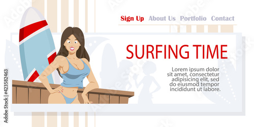 Vektorová ilustrace konceptu recepce hotelu. Mladá žena recepční stojící na recepci plochý styl designový prvek.
