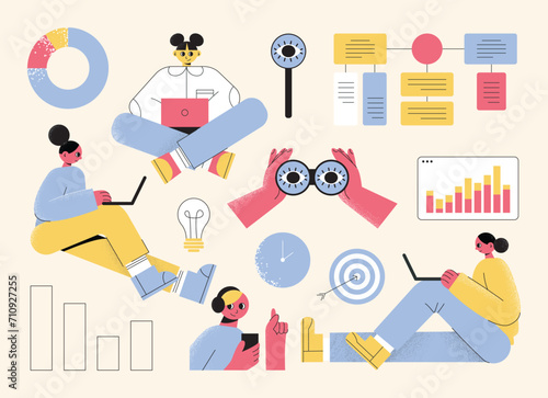 Hotel service vector plochý izometrický plakát, banner set. Recepce hotelu, snídaně formou bufetu, donáška zavazadel, koncepční prvky pokojové služby.