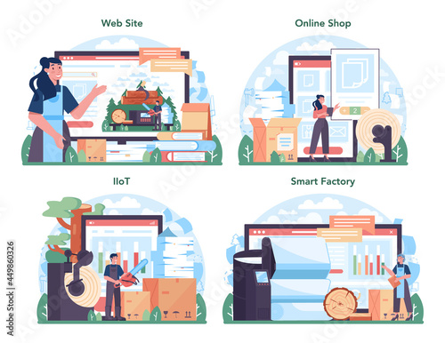 Hotelový personál a služby izolované vektorové scény. Správce na recepci, číšník v restauraci, vrátný a pokojská v uniformě