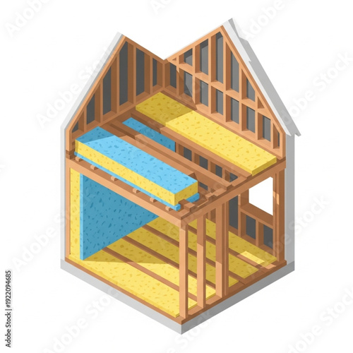 Dům stavební rám 3D izometrické vektorové ikony. Izolovaný dům stavební architektura na bílém pozadí