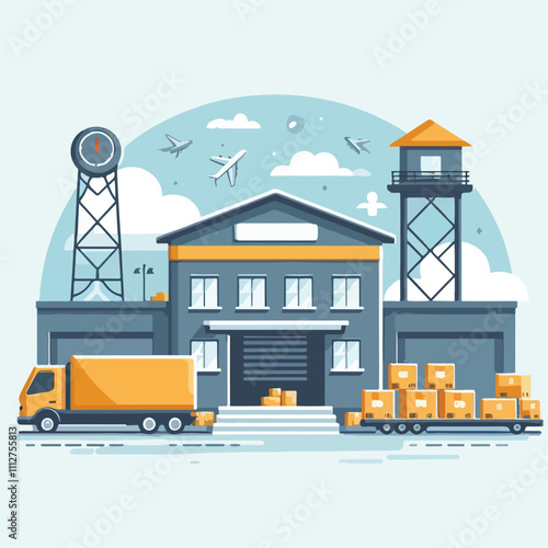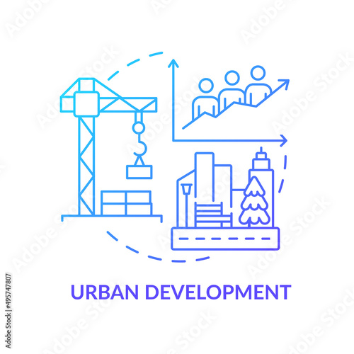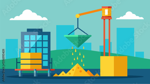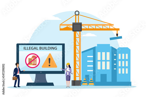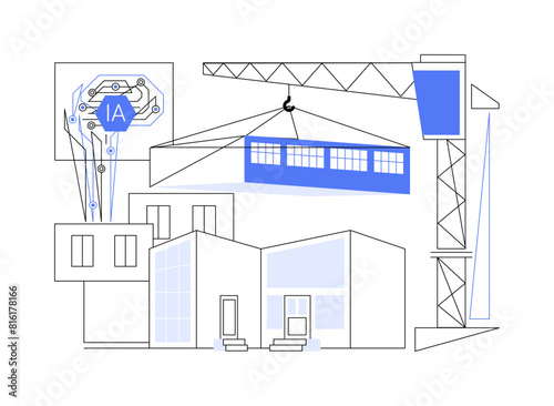 Vektorová ilustrace věžového jeřábu stavební konstrukce řídicí panel pro sledování podnikatelské činnosti se statistickými grafy. Koncept stavby domu pro webový banner, webovou stránku, prezentaci atd.