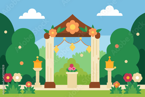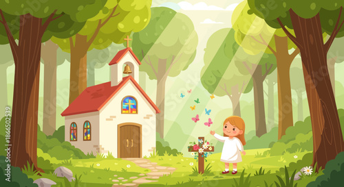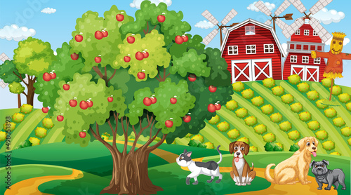 Dům na stromě. Hřiště krajina. Vektorové děti si hrají v parku s domem na stromě a houpačkou. Školka, školní zahrada nebo venkovní letní tábor