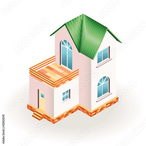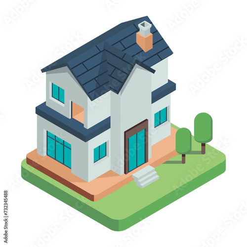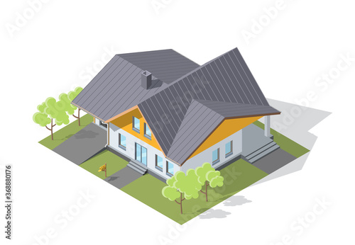 Dům vektor. Zabezpečená budova domu pod ikonou ochrany štítu. Systém bezpečného zámku, inteligentní bezpečnostní technologie nebo iot pro ochranu majetku. Pojištění nemovitostí a rezidenční dohled izometrické logo