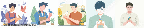 Domácí práce muž zalévání květina vektorové ikony izolovaných na bílém pozadí