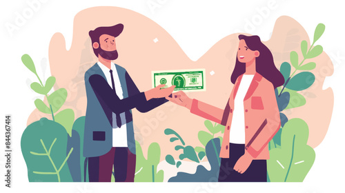Obří pomocná ruka, obchodní muž a žena malé kreslené postavičky, symbol srdce, plochá vektorová ilustrace. Lidská ruka pomáhá dosáhnout cíle v podnikání. Koncept charitativní a sociální podpory.