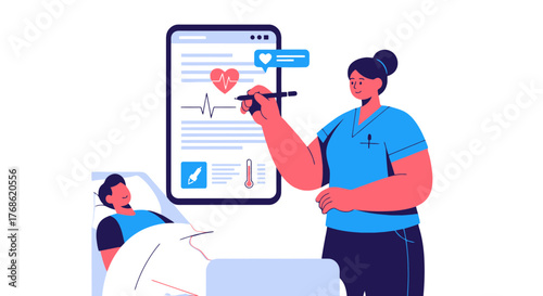 Lidský orgán pro transplantaci zkontrolovat vektorový plakát. Klinika lékař analyzuje srdeční tep a puls před transplantací. Koncepce medicíny a transplantologie