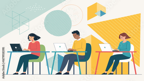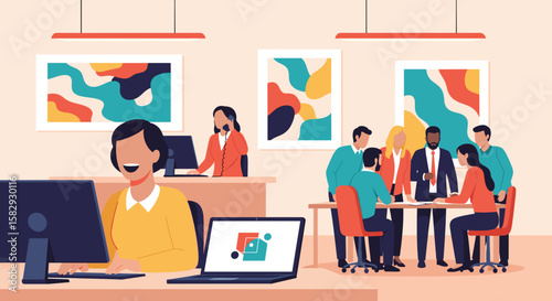 Humanitární pomoc, vektorové ploché ilustrace. Drobné mužské a ženské postavy distribuující jídlo, zdravotnické potřeby lidem v nouzi z obrovských lepenkových krabic. Dobrovolnictví, dárcovství, humanitární pomoc