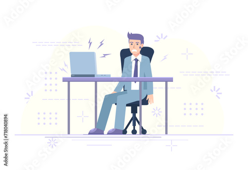 Vektorové ilustrace rybáře chytání ryb, zatímco sedí na židli. Fisher s rybářským prutem plochý designový prvek, ikona izolovaná na bílém pozadí.