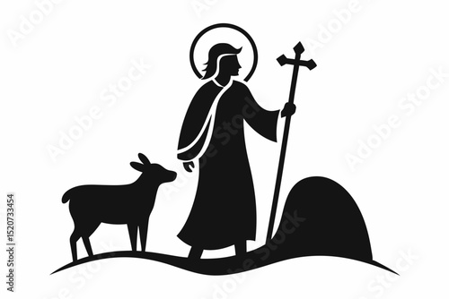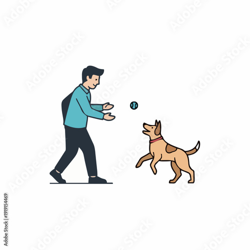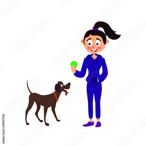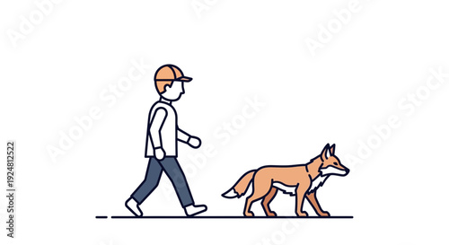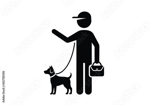 Vektorová ilustrace lovce s puškou chůzi se svým loveckým psem. Hunter lidé plochý styl designový prvek, ikona izolován na bílém pozadí.