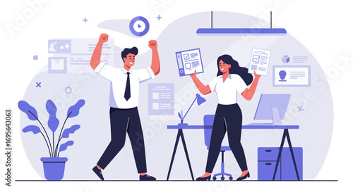 Lovec mikro postav drží obrovskou brokovnici, vektorová ilustrace. Lovecké vybavení, venkovní sportovní a rekreační koncept pro webový banner, webovou stránku atd.