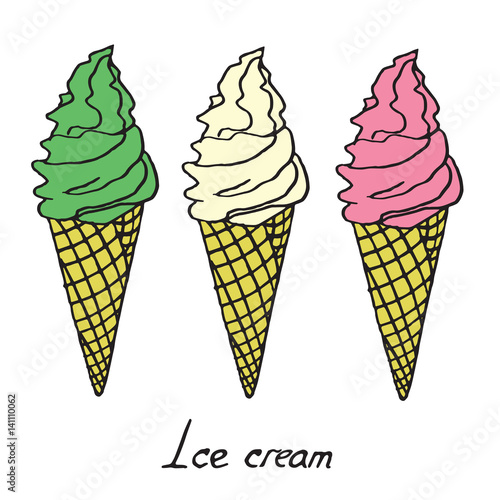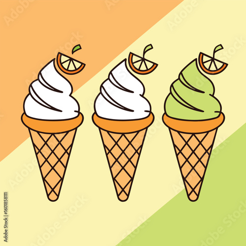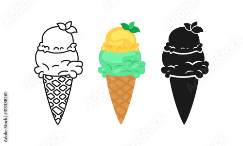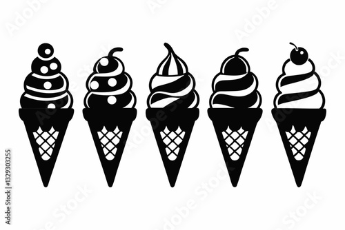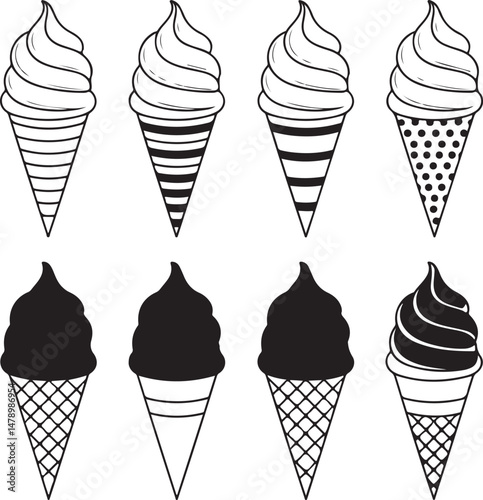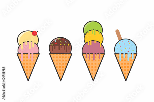Sada ikon zmrzlinového kužele. Vektorové ilustrace ve stylu papírového umění. Origami tání zmrzliny. Letní pozadí, plakát, banner, šablona návrhu letáku.