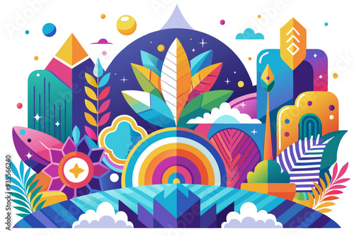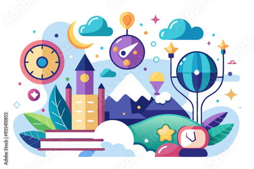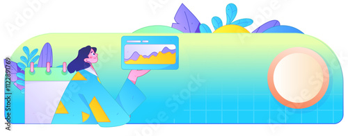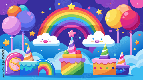 Balení zmrzliny plastový kbelík, vana, maketa kontejneru, papír řezané nebe s mraky, horkovzdušné balóny a duha, vektorové ilustrace. Přírodní zdravý sladký dezert, šablony reklam na mléčné výrobky.