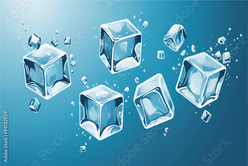 Tapety kostka ledu. Vektorové realistické ilustrace. Zmrazené vody kostka Tvar abstraktní pozadí.