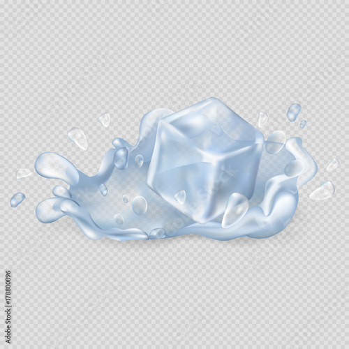 Sada ikon stříkající vody a kostky ledu. Padající do vody a podvodních kostek ledu. Vektorové realistické ilustrace izolované na průhledném pozadí.