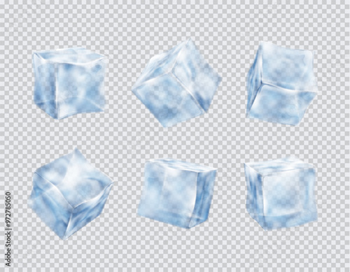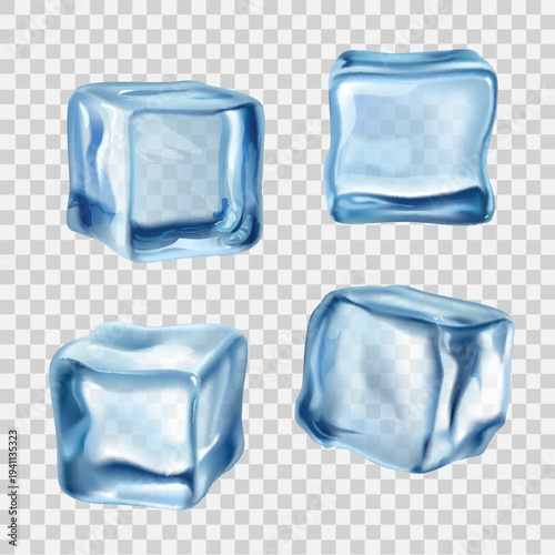 Sada ikon kostek ledu. Vektorové realistické ilustrace izolované na průhledném pozadí.