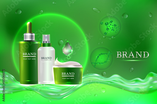 Ledový čaj produkty ad. Vektorové 3D ilustrace. Design šablony nealkoholických nápojů z hliníku. Zelený čaj láhev reklamní plakát rozložení.