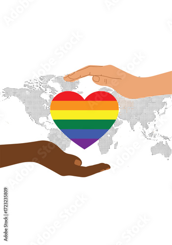 Světový Mezinárodní den proti homofobii. Vektorové idahot plakát. Banner, karta s duhovým srdcem a rukama ilustrace. Bisexuální, homosexuální a lesbická lidská rovnost a práva