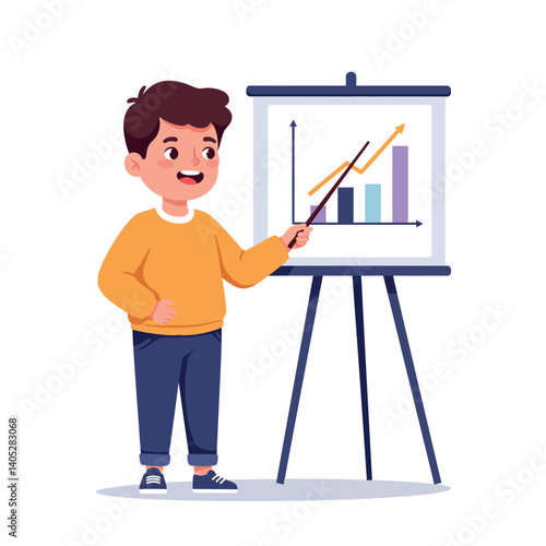 Vektorové ilustrace šťastný nápad člověk přichází s novým nápadem. Muž stojící se zdviženýma rukama a ukazující prstem rukou znamení. Kreativní tým plochý designový prvek, ikona izolovaná na bílém pozadí.