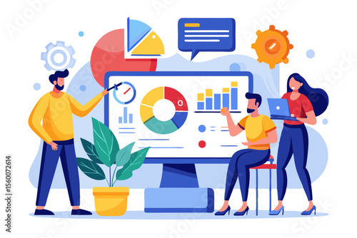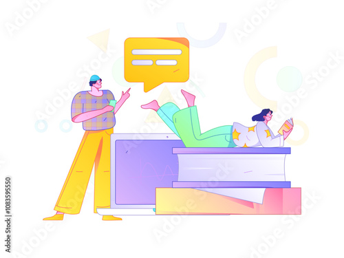 Vektorová ilustrace průmyslového robotického ramene vyzvednutí zásilky z dopravního pásu a jeho umístění na nové místo, pracovníci. Tovární automatizace, pick and place roboty koncepty pro web banner, webové stránky.