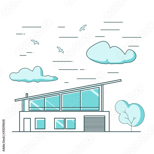Vektorová ilustrace konceptu průmyslových zařízení. Průmyslová a tovární budova s pozadím kouře v papírovém uměleckém stylu.